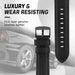- 【Premium Material & Unique Design】The sport watch strap is made of genuine leather silicone, and comes with precision-polished black stainless steel clasp constructed to match watch face, classic and elegant. Unique silicone lining texture design, breathable, moistureproof, and good for perspiration, give a comfortable wearing experience and perfect profile on any occasion (a daily basis, work, gym, party, general wear etc).